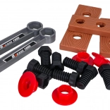 A csavarok, anyák és lyukas lécek lehetővé teszik az elemek összekapcsolását, a szerkezetek kipróbálását, valamint a koordináció és a logikus gondolkodás fejlesztését.