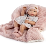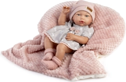 A 38 cm-es élethű újszülött kislány baba minden kis gondoskodót elbűvöl. Teljes vinil teste részletgazdag kidolgozású, fürdethető, mozgatható végtagokkal rendelkezik, és kézzel készül Spanyolországban. Díszdobozban érkezik, és 3 éves kortól ajánlott.