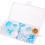 Ez a kreatív készlet lehetővé teszi, hogy könnyedén öntsön kristálytiszta gyantadíszeket kedvelt formákban – csillag, felhő vagy szív. Keverje össze a A és B komponenseket 1:1 arányban, adjon hozzá csillámokat vagy színes konfettit, öntse szilikon formákba, majd a kikeményedés után egészítse ki fém karikákkal, láncokkal és gyöngyökkel. A praktikus rendező segítségével minden alkatrészt átláthatóan kéznél tarthat.