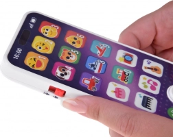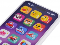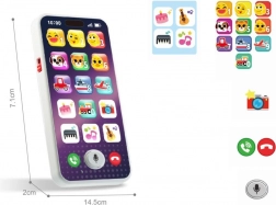 Színes, interaktív telefon a legkisebbeknek, amely a valódi okostelefont utánozza, és rengeteg szórakozást és tanulást kínál. A nagy ikonoknak köszönhetően a gyermek megtanulja a számokat, az állati és közlekedési hangokat, és dallamokat hallgat. A játék könnyű és lapos kialakítású, könnyen tartható a kis kezekben, és hangerőszabályzóval rendelkezik a kényelmes játékhoz otthon és útközben is.