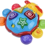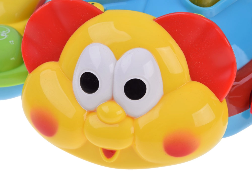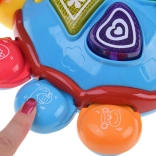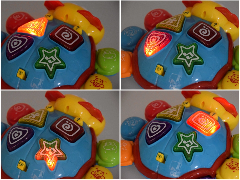 A hangjegyes gomb vidám dallamokat indít, melyeket villogó fények kísérnek érzékszervi stimulációért és játékos örömért.