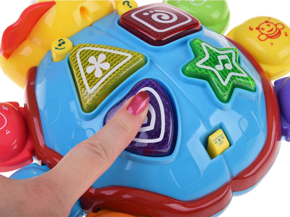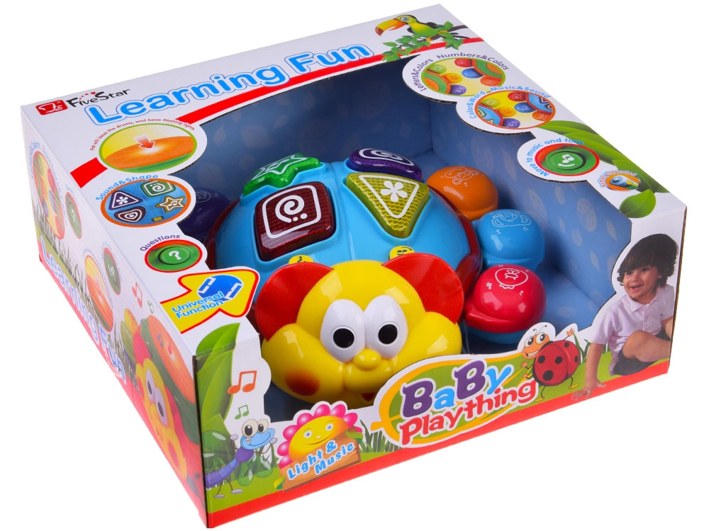 Színes interaktív bogárka ösztönzi a gyerekeket kúszásra és mászásra, vidám dallamokat játszik, fényekkel villog, és a okos akadályérzékelőnek köszönhetően irányt vált. A nagy gombok megnyomásával a gyerekek megtanulják a színeket, az állatokat, valamint az ok–okozat elvét. Ideális játék az aktív szórakozáshoz és a finommotorika fejlesztéséhez.