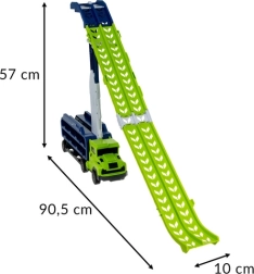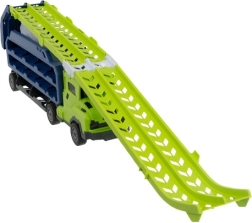 A kétsávos, kihajtható rámpa akciódús versenyszetté változtatja a szállítót. Ideális páros összecsapásokhoz és gyors lejtmenetekhez.