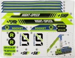 - Kamion pótkocsival és dupla rámpával, 6 fém kisautó, matrica készlet, használati útmutató, színes ajándékdoboz, szállítókarton