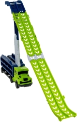 A nagy szállító kamion, amely pillanatok alatt kétsávos versenypályává alakul, órákon át tartó, akciódús szórakozást nyújt a gyerekeknek. A csomag része 6 darab fém kisautó, tárolás közvetlenül a vontatóban és gyorsan kihajtható rámpák a kétsávos versenyhez. A lendkerekes (súrlódásos) meghajtásnak köszönhetően a kisautók lökés után maguktól mennek, a biztonságos kialakítás és a minőségi anyagok pedig gondtalan játékot biztosítanak.