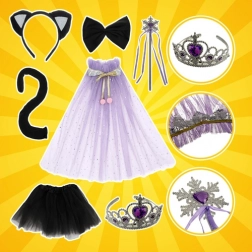 Ez a fekete macskajelmez a KRUZZEL márkától minden kislányt elegáns cicahölggyé varázsol. A 3–10 éveseknek szánt univerzális méretnek köszönhetően remekül illeszkedik, pehelykönnyű és kényelmes, tökéletes választás farsangra, születésnapi bulira és gyerekfellépésekre. Az anyagok kellemesek, és nem korlátozzák a szabad mozgást.
