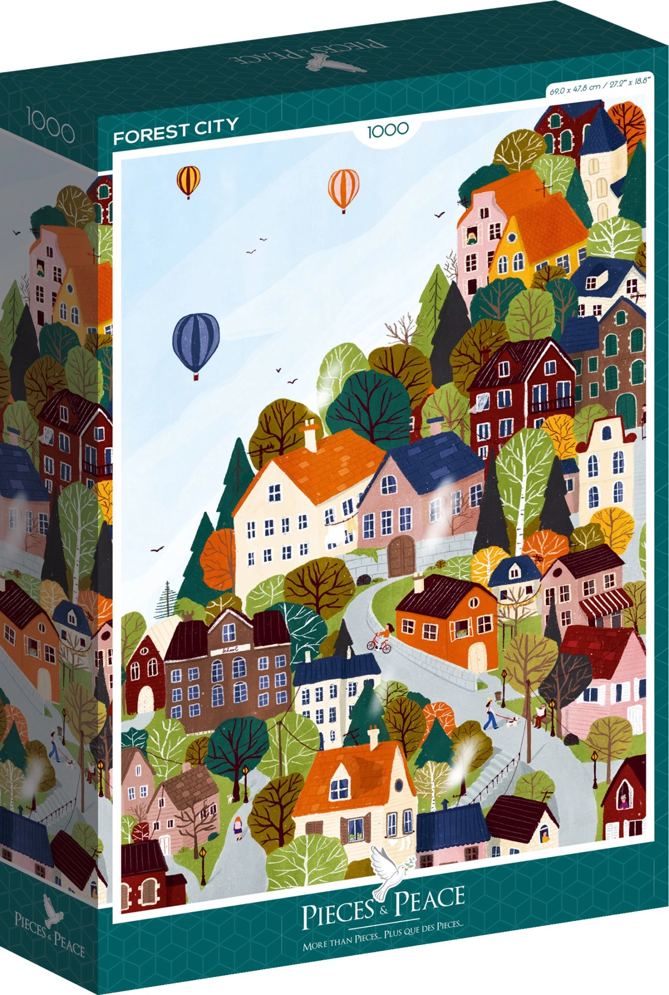Élvezze a pihenést és a kreatív kihívást a Erdei város kirakóval a PIECES & PEACE márkától, 1000 darabbal. Összeállítás után egy lenyűgöző, 47,8 × 69 cm méretű kép születik, amely ideális keretezéshez és ajándéknak is a kirakók szerelmeseinek.
