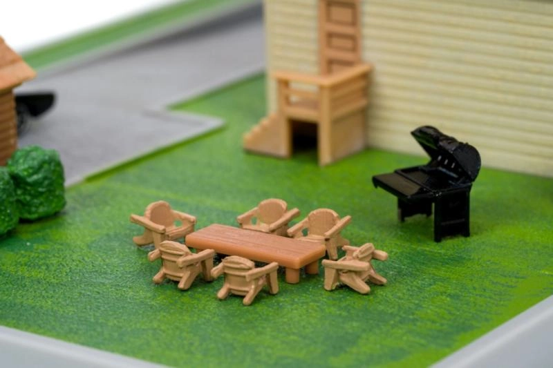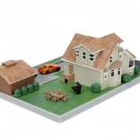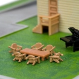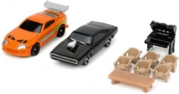 A csomagban 2 fém nano kisautó is található dioráma méretarányban – Dodge Charger és Toyota Supra – szabadon futó kerekekkel és gumibroncsokkal a sima mozgásért. A hangulatot kerti grill és bútorok teszik teljessé élethű jelenetekhez és fotózáshoz.