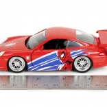 Élvezze az akciódús vezetést a gyűjtői Porsche 911 GT3 RS modellel MARVEL Pókember motívumokkal. A fém kivitel precíz részletekkel, kék‑fehér csíkokkal és nagy hátsó szárnnyal élethű és tartós hatást kelt. A 1:32 méretarány és kb. 13,5 cm hossz ideálissá teszi vitrinbe és gyerekszobába egyaránt.