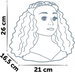 A stabil talapzat tapadókorongokkal szilárdan az asztalon tartja a fejet, így a haj könnyebben formázható. A 23 darab tartozék mind elfér a titkos rekeszben a talapzatban, így minden mindig kéznél van és rendben marad. A 26 cm-es fejmagasság ideális a gyerek kezekhez és az első fodrászpróbálkozásokhoz.
