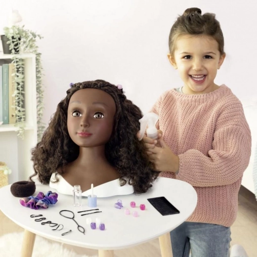 Ez az Afro fésülőfej remek társ a fonatok, kontyok és modern frizurák gyakorlásához. A valósághű, dús fürtök lehetővé teszik a fésülést, fonást és díszítést, a mellékelt kiegészítőkkel pedig frizurákat készíthetsz minden alkalomra. Ráadásul szórakoztató varázsajkak funkcióval rendelkezik – mártsd a mellékelt ecsetet hideg vízbe, és nézd, ahogy az ajkak szépen elszíneződnek.