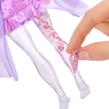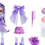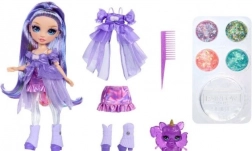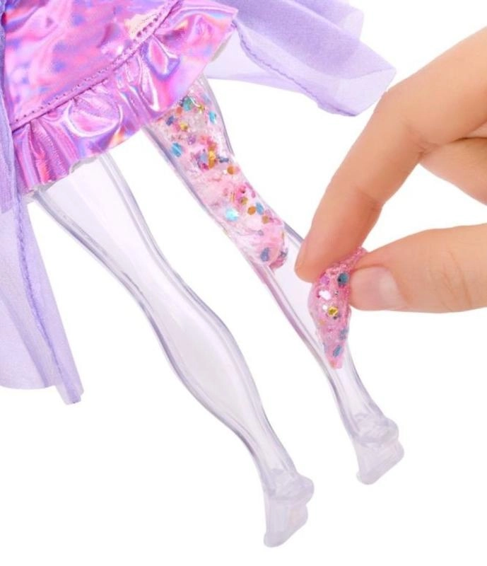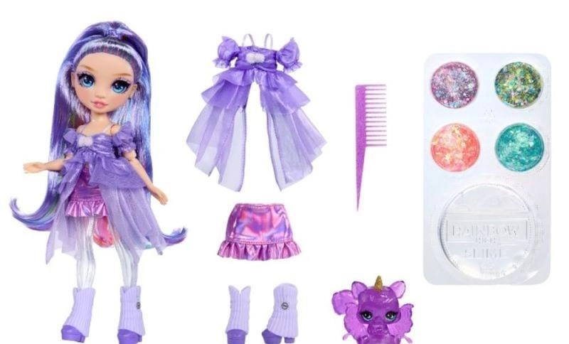 Ez a stílusos baba hosszú, lila hajjal és feltűnő outfittel teljesen új játékélményt kínál. Keverd össze a slime-ot a színes csillámokkal, töltsd meg velük a lábak átlátszó részeit, és figyeld, ahogy Violet megjelenése azonnal átváltozik. Az ízületeknek köszönhetően a baba könnyen pózolható, így divatjeleneteket is létrehozhatsz.