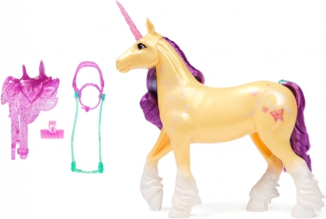 Fedezd fel a Unicorn Academy varázslatos világát Leaf egyszarvúval! Ez a kb. 24–28 cm-es, a NETFLIX sorozata által inspirált figura csillogó szarvval, gyöngyházfényű növénymágia-jegyekkel, színes sörénnyel és farokkal, valamint levehető kantárral és nyereggel érkezik. Finom fejmozdulattal életre kel a személyisége, így a gyerekek újra átélhetik Avával a varázslatos barátság kötelékét.