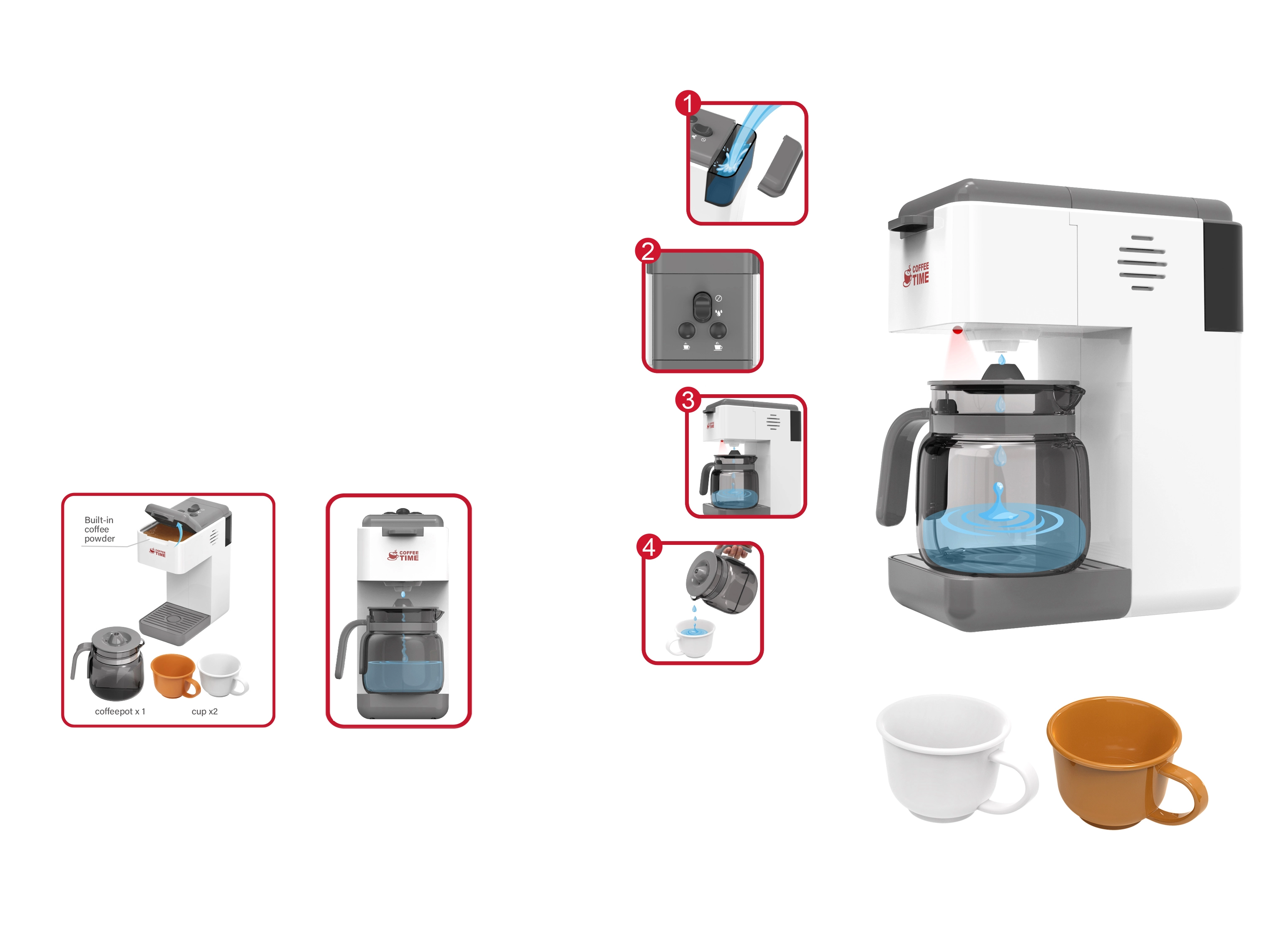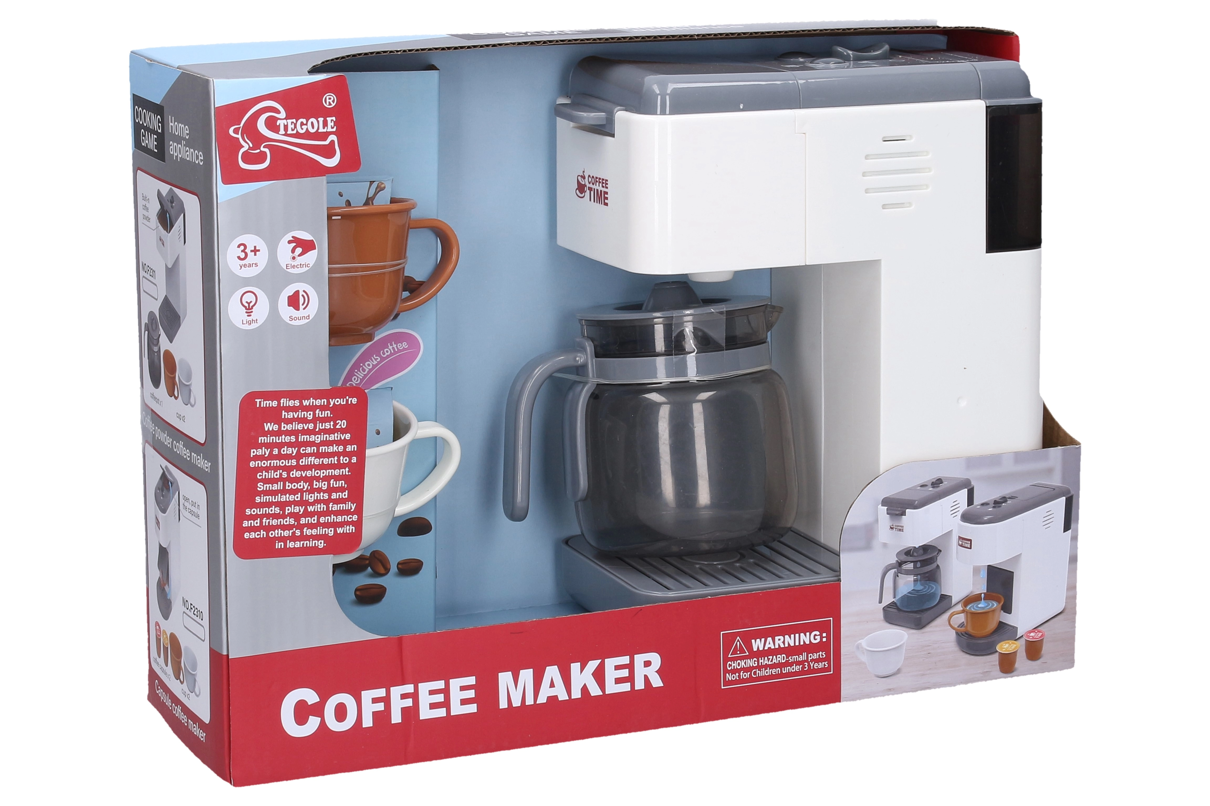 Fedezze fel a szórakoztató gyerek kávéfőzőt kannával, amely a valódi kávéfőzést szimulálja. Csak töltse fel a tartályt vízzel, és a kávéfőző automatikusan a kannába engedi a vizet. A fény- és hangeffekteknek köszönhetően a játék még élethűbb, míg az on/off gomb a kisebbek számára is könnyű kezelést biztosít.