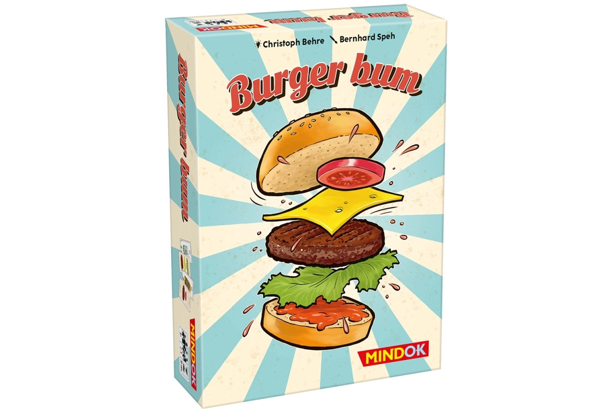 A Burger Bum egy pörgős, családi kártyajáték, amelyben finom burgereket raksz össze hozzávalókártyákból. Az nyer, akinek a játék végén a legtöbb kártya van a paklijában – a kulcs a gyors reakció, a figyelem és a jó időzítés, mikor kész a burger.