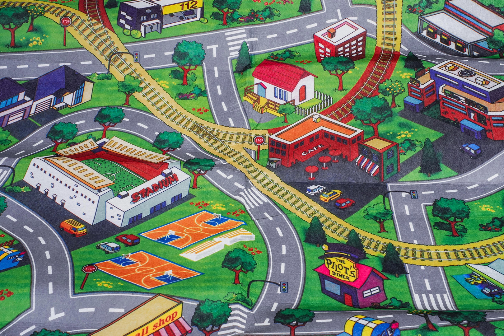 Játékszőnyeg utakkal és gazdag tartozékkal