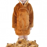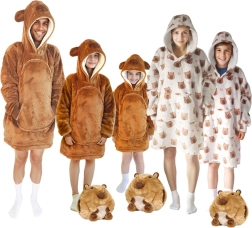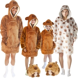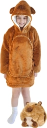 Ez a kapibara dizájnú gyerek kapucnis pulóvertakaró olyan, mint egy ölelés, amelytől tetőtől talpig felmelegszel. A belső réteg bolyhos és meleg sherpa fleece-ből, a külső oldal pedig puha flanelből áll, amely selymes tapintású. A oversize szabásnak köszönhetően a gyerekek kényelmesen érezhetik magukat tévénézés, játék és pihenés közben.