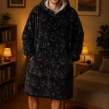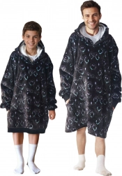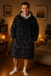 A meleg, gamer mintás pulóvertakaró a pihenés pillanataira készült. A külső flanel kellemesen puha tapintású, a belső sherpa polár réteg pedig bolyhos meleget ad felesleges súly nélkül. A univerzális, oversize szabásnak köszönhetően nem korlátoz a mozgásban, és remekül áll tiniknek és felnőtteknek egyaránt.