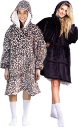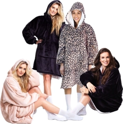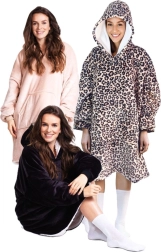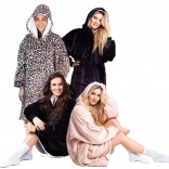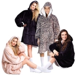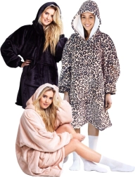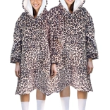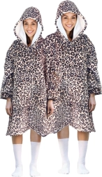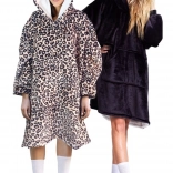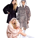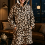 Bújjon a maximális kényelembe – ez a oversize kapucnis pulóvertakaró kívül puha flanelt, belül pedig meleg sherpa fleece-t kombinál. A óriási elülső zsebnek, a bő szabásnak és a térdig érő hossznak köszönhetően ideális otthoni pihenéshez, számítógépes munkához és kinti ücsörgéshez is. A stílusos leopárdminta extra lendületet ad a relaxációnak.