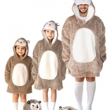 Burkolózz be a maximális kényelembe a COZY NOXXIEZ meleg kapucnis pulóvertakaróval aranyos sünimintával. Egyesíti a bő, kapucnis pulóvert és a puha takarót, így egyszerre nyújt kiemelkedő meleget, puhaságot és szabad mozgást otthon és kint. Nagy kapucnija állatos motívummal és tágas elülső zsebe van a kezek felmelegítéséhez.