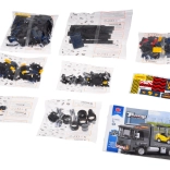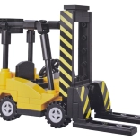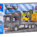 Ez a technikai építőkészlet a közlekedés és a logisztika világát hozza el a gyerekszobába. Építse meg a nyergesvontatót síkplatóval és lehajtható rámpákkal, rakodja fel a targoncát a platóra, és induljon „útnak”. A valósághű színvilág sötétkék, szürke és sárga árnyalatokban, valamint a mellékelt matricák autentikus haszonjármű-megjelenést kölcsönöznek a modelleknek.
