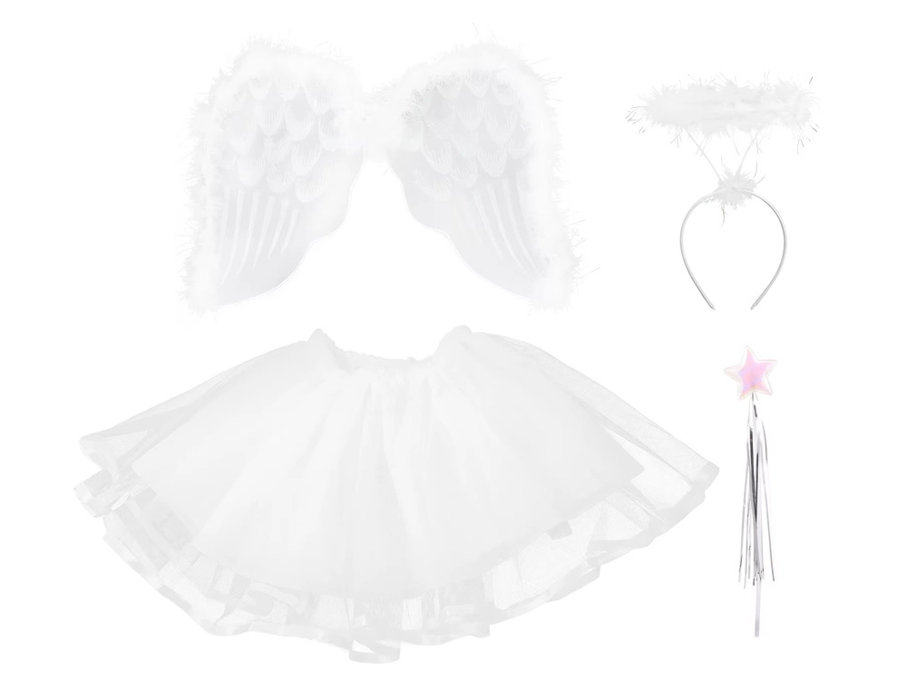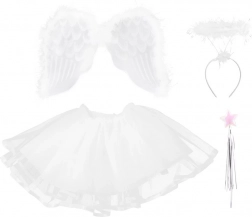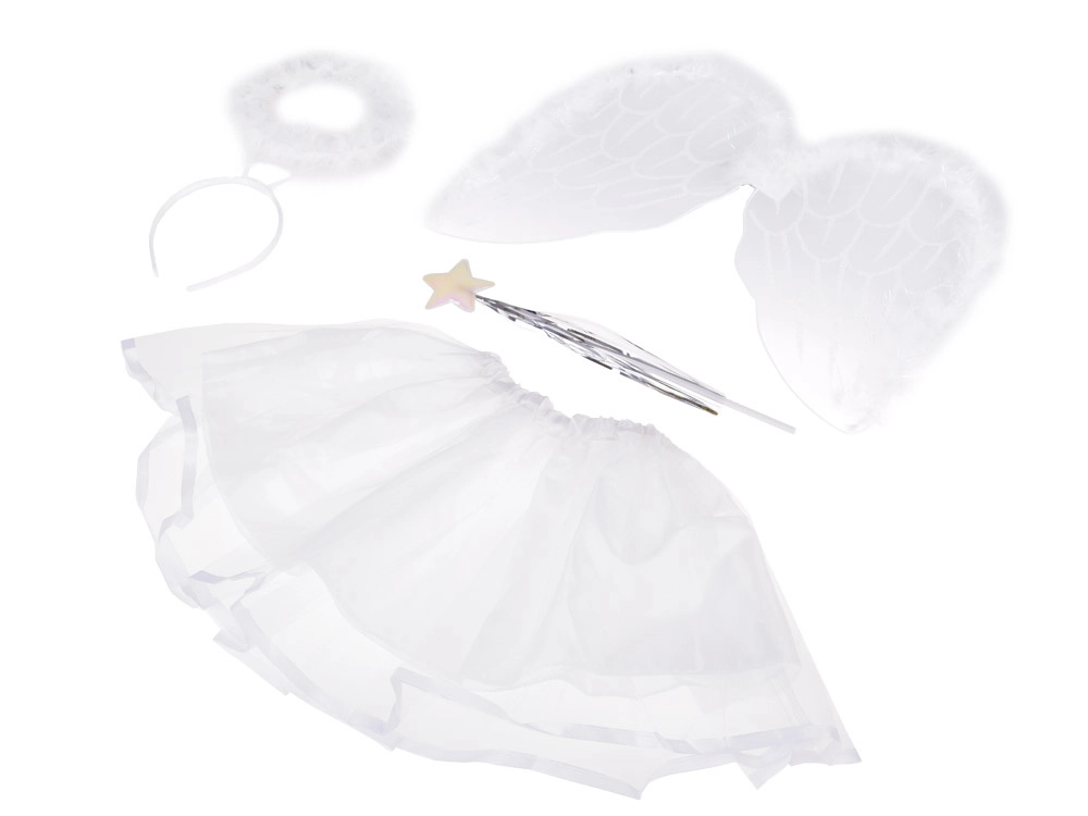 - Szárnyak, glória fejpánton, tüllszoknya, varázspálca