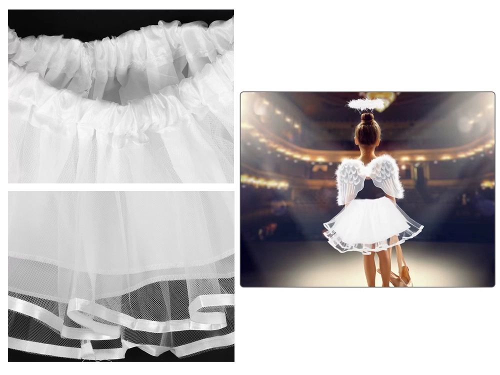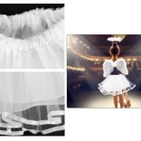 A többrétegű tüllszoknya könnyű és légies. A rugalmas derékrész könnyen igazodik – körülbelül 18–30 cm kerületben, a szoknya hossza kb. 32 cm. Tökéletes a szabad mozgáshoz és az egész napos kényelemhez.