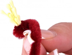 bolyhos drótok (zsenília), dekoratív bibék, florisztikai szalag, díszpapír a csokor csomagolásához, zsineg, twine, képes útmutató, kiegészítő ragasztórúd (opcionális)