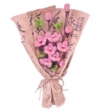 Fedezd fel a japán SAKURA varázsát egy kézzel készített csokor formájában. A készlet színes bolyhos drótokat, dekoratív bibéket, florisztikai szalagot, csomagolópapírt és zsineget tartalmaz – egyszóval mindent, hogy azonnal nekiláthass a készítésnek. A kész csokor elegáns hatást kelt, és az anyagok finom textúrájának köszönhetően modern és hagyományos enteriőrben is remekül mutat.