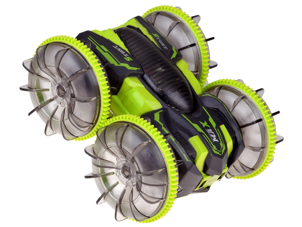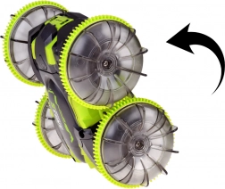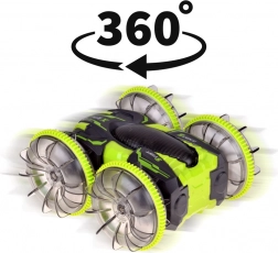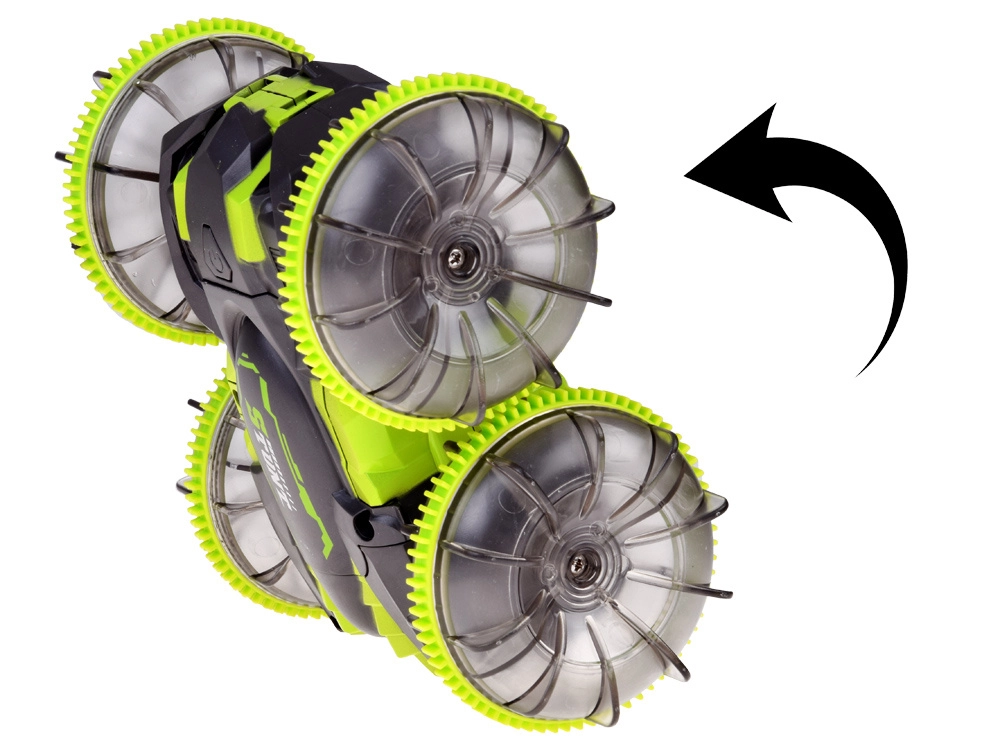 Fedezd fel az adrenalint az amfibiás kaszkadőr RC autóval, amely megbirkózik fűvel, szőnyeggel, járólappal és a víz felszínével is. A nagy, áttetsző kerekek markáns mintázattal és LED háttérvilágítással kiváló tapadást és látványos megjelenést biztosítanak nappal és sötétedés után is. A 360°-os fordulatnak köszönhetően felborulás után is folytatja a haladást.