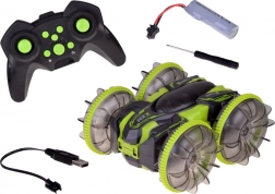 Szórakoztató amfibiás RC autó, amely közlekedik szárazföldön és vízen, tud 360°-os fordulatokat és kaszkadőr trükköket, valamint megvilágított, túlméretezett kerekekkel rendelkezik a kiváló tapadásért. A stabil 2,4 GHz-es vezérlés, az intuitív irányítás és a strapabíró kialakítás órákon át tartó akciódús szórakozást biztosít beltéren és kültéren egyaránt.
