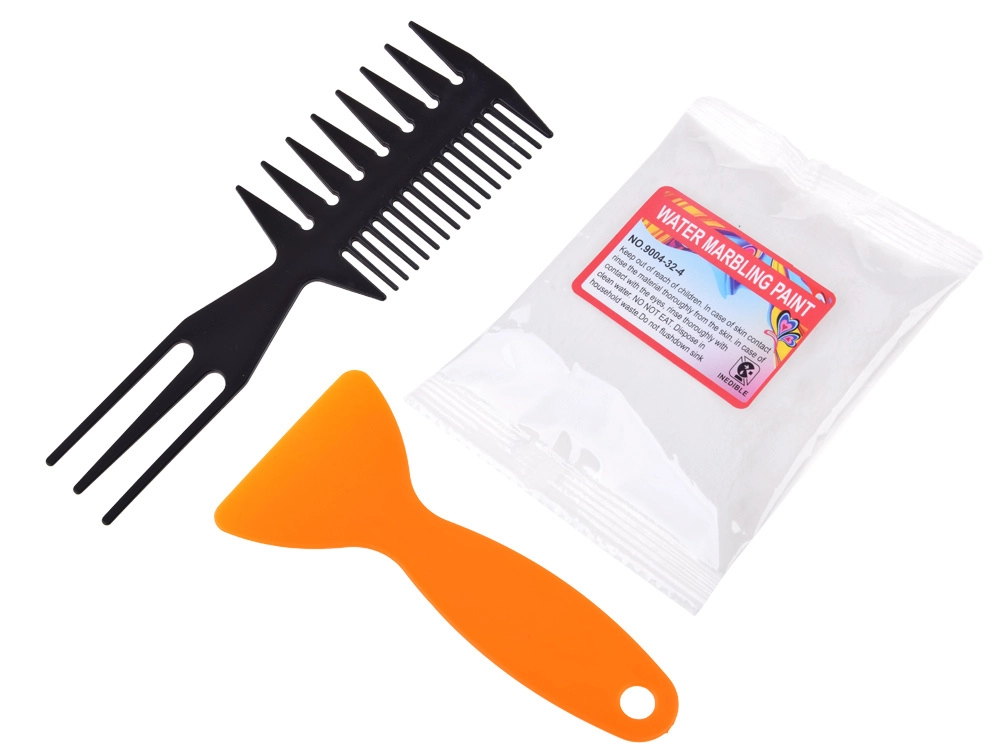 A speciális fésű és eszközök segítségével percek alatt alkothat hagyományos és modern márványmotívumokat.
