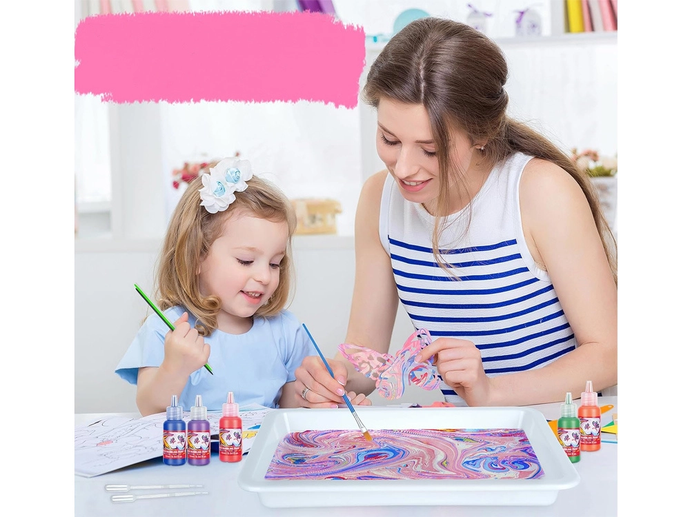 Fedezze fel az ősi Ebru márványozás varázsát, és alkosson egyedi mintákat a víz felszínén. Komplett kreatív szett 12 élénk színnel, tálcával, papírokkal és eszközökkel az otthoni, egyszerű alkotáshoz. Ideális gyermekeknek és felnőtteknek, fejleszti a kreativitást, a koncentrációt és a finommotorikát.