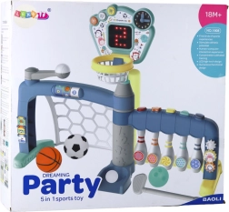 A multifunkcionális 5 az 1-ben sport szett modern játék, amely változatos mozgást és örömöt nyújt a gyerekeknek. A gyermek öt sportágat próbálhat ki – focit, kosárlabdát, bowlingot, golfot és baseballt – és felfedezheti sporttehetségét. Az interaktív LED pontszámláló tábla hangokkal követi a fejlődést és motivál a jobb teljesítményre, míg az állítható kosár a gyermek életkorához és magasságához igazítható.