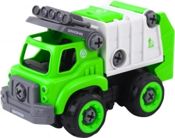 Ez az interaktív készlet ötvözi az építést és a távirányítást. A gyerekek műanyag csavarokkal maguk rakják össze a városi kukásautót, majd mozgásba hozzák – elég behelyezni a motort és a fúrót RC módba kapcsolni. A masszív, biztonságos műanyag elemek és a nagy kerekek bírják a mindennapos játékot.
