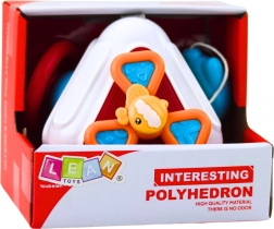 A kockán található forgó propeller, mozgatható kormány kerregővel, nyomógombok és golyók, valamint levehető elem zsinóron. Az elemekkel való játék fejleszti a logikus gondolkodást, a kézügyességet és a gyermek természetes kíváncsiságát. A kocka fel is akasztható a kényelmesebb használat érdekében.