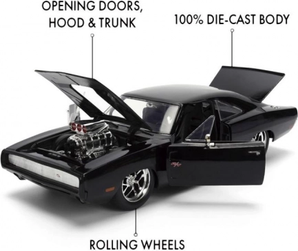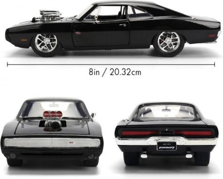 Az ikonikus gyűjtői modell, a 1970 DODGE CHARGER a Halálos iramban filmből, 1:24 méretarányban, örömet szerez a muscle car és a filmsorozat rajongóinak. Fém kivitelt, nyitható ajtókat, motorháztetőt és csomagtartót, valamint élethű részleteket kínál, köztük a motorháztetőn lévő feltűnő kompresszort. A modell hossza körülbelül 21 cm.