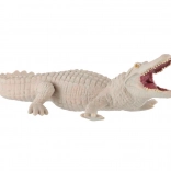 Realista, 15 cm hosszú fehér aligátor műanyag figura, amely lenyűgözi az állatrajongó gyerekeket és a gyűjtőket. A magas szintű részletesség, a textúrázott pikkelyek, a nyitott, fogakat mutató száj és az ellenálló műanyag ideális kiegészítővé teszik játékhoz és a hüllőkről szóló oktatáshoz.