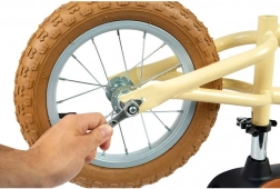 A kényelmes barna nyereg gyorsszorítóval egyszerű magasságállítást tesz lehetővé. A puha markolatok biztonságos fogást nyújtanak a kicsi kezeknek.