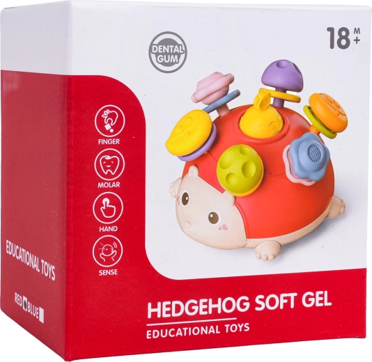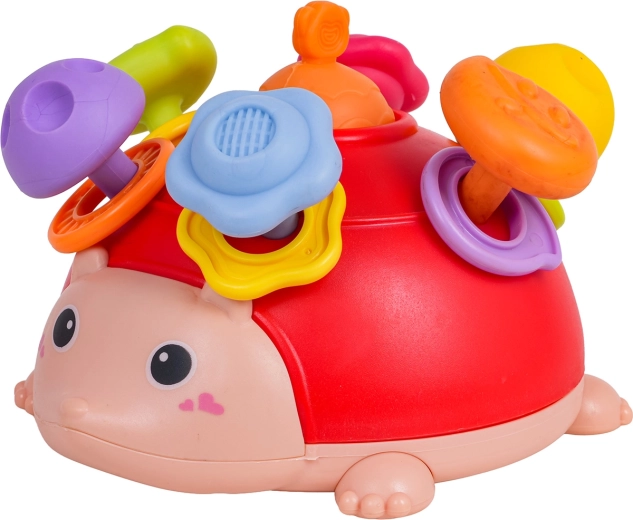 Aranyos érzékelő sündisznó 18 hónapos kortól, amely fejleszti a finommotorikát, az érzékelést és a koordinációs készségeket. Puhább tüskéi megkönnyebbülést hozhatnak fogzás idején, színes, csörgő karikái, nyomható és húzható gombja, a kéz- és lábrészeken gumis rögzítések a biztonságos húzogatáshoz, valamint alul egy pörgettyű gondoskodik a végtelen forgatásról. Biztonságos anyagokból készült éles élek nélkül, élénk színekben, amelyek természetesen játékra hívják a gyerekeket.
