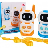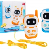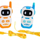 Szórakoztató, két darabból álló gyerek walkie-talkie készlet robot stílusban, 3 éves kortól kis felfedezőknek. Könnyű és kompakt, remekül illik a kis kezekbe, és nagy hatótávot kínál kültéri és beltéri játékhoz. A csomagban csuklópántok is találhatók a biztonságos hordáshoz. Tápellátás: adó-vevőnként 3× AA elem, nem része a csomagnak.