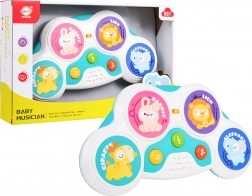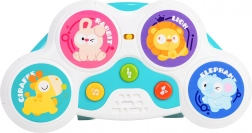 Ez a zenélő játék érintőfelületekkel és állatkákkal (nyuszi, oroszlán, zsiráf és elefánt) ösztönzi a gyerekeket a hangok és a ritmus felfedezésére. A panel teljes hosszában futó finom fényhatások és a vidám színek támogatják a vizuális észlelést, míg a hangok és dallamok fejlesztik a hallást és a ritmusérzéket.