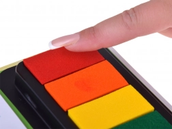 Az integrált paletta 7 élénk színnel és puha párnákkal lehetővé teszi a maszatolás nélküli nyomdázást. Csak mártsd bele az ujjad, és alkoss.