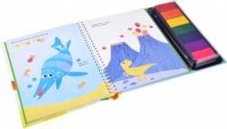 A dinoszauruszos ujjfestő könyv ideális választás 3 éves kortól. Minden oldalon másik őskori lény és egy egyszerű feladat vár, amelyet a gyermek ujjlenyomatokkal teljesít. Az integrált 7 színes paletta lehetővé teszi az alkotást további eszközök nélkül – csak nyisd ki, és kezdj alkotni.
