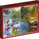 Fedezze fel a négy évszak szépségét egyetlen képen. Ez a kirakó precízen vágott darabokat, kellemes felületet és olyan motívumot kínál, amely az elsőtől az utolsó darabig szórakoztat. Kiegyensúlyozott nehézsége miatt felnőtteknek és haladó tinédzsereknek egyaránt megfelelő.