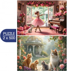 Ez az elegáns puzzle szett tökéletes ajándék mindazoknak, akik szeretik a balett témájú motívumokat, a virágos jeleneteket és a pihentető kirakózást.