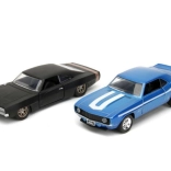 Chevrolet Camaro 1969 és Dodge Charger Wide Body 1968 hű 1:32 méretarányban – a tökéletes alap minden Halálos iramban gyűjteményhez.