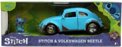 Élvezze a klasszikus Volkswagen ikonikus dizájnját Stitch bájos energiájával. Ez a precízen kidolgozott fém modell, a 1959 VW Beetle 1:32, valósághű részleteket, nyitható ajtókat és sima mozgást kínál a szabadonfutónak köszönhetően. A csomag része egy témába illő Stitch figura, amely játékos karaktert ad gyűjteményének vagy polcának.