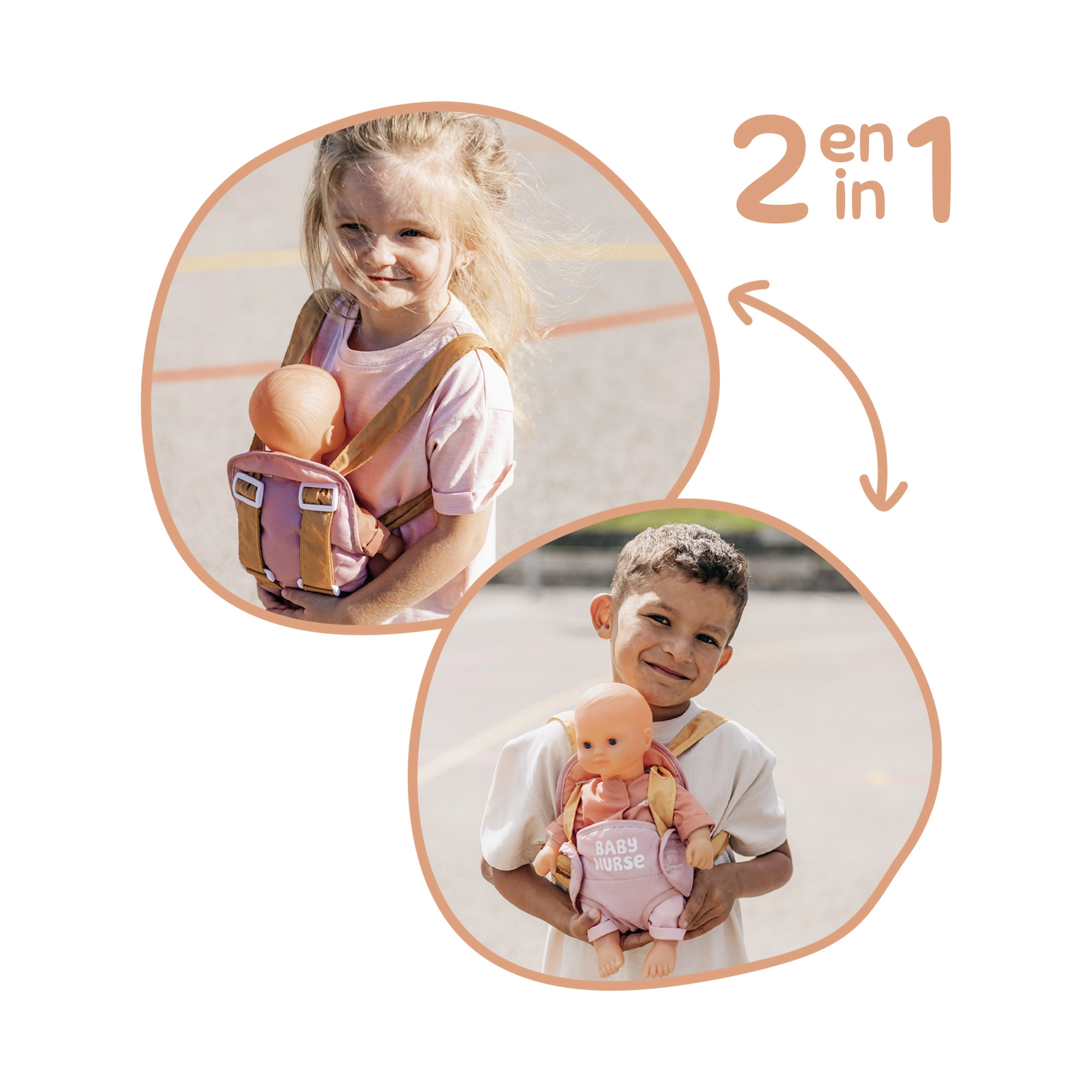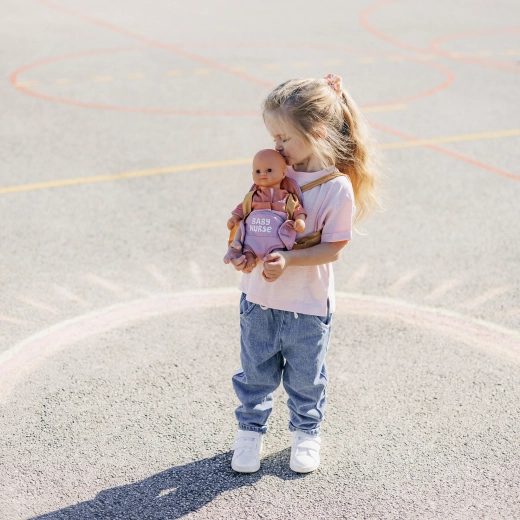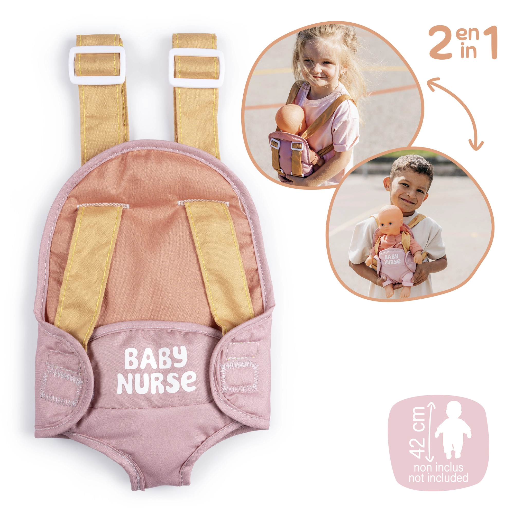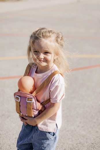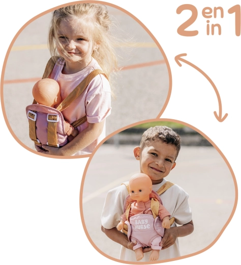 A hordozó a állítható pántoknak köszönhetően könnyen a gyermek alkatához igazítható. A rózsaszín és okker pasztell színkombináció finom és modern hatású, így tökéletesen illik a BABY NURSE babakellékekhez.