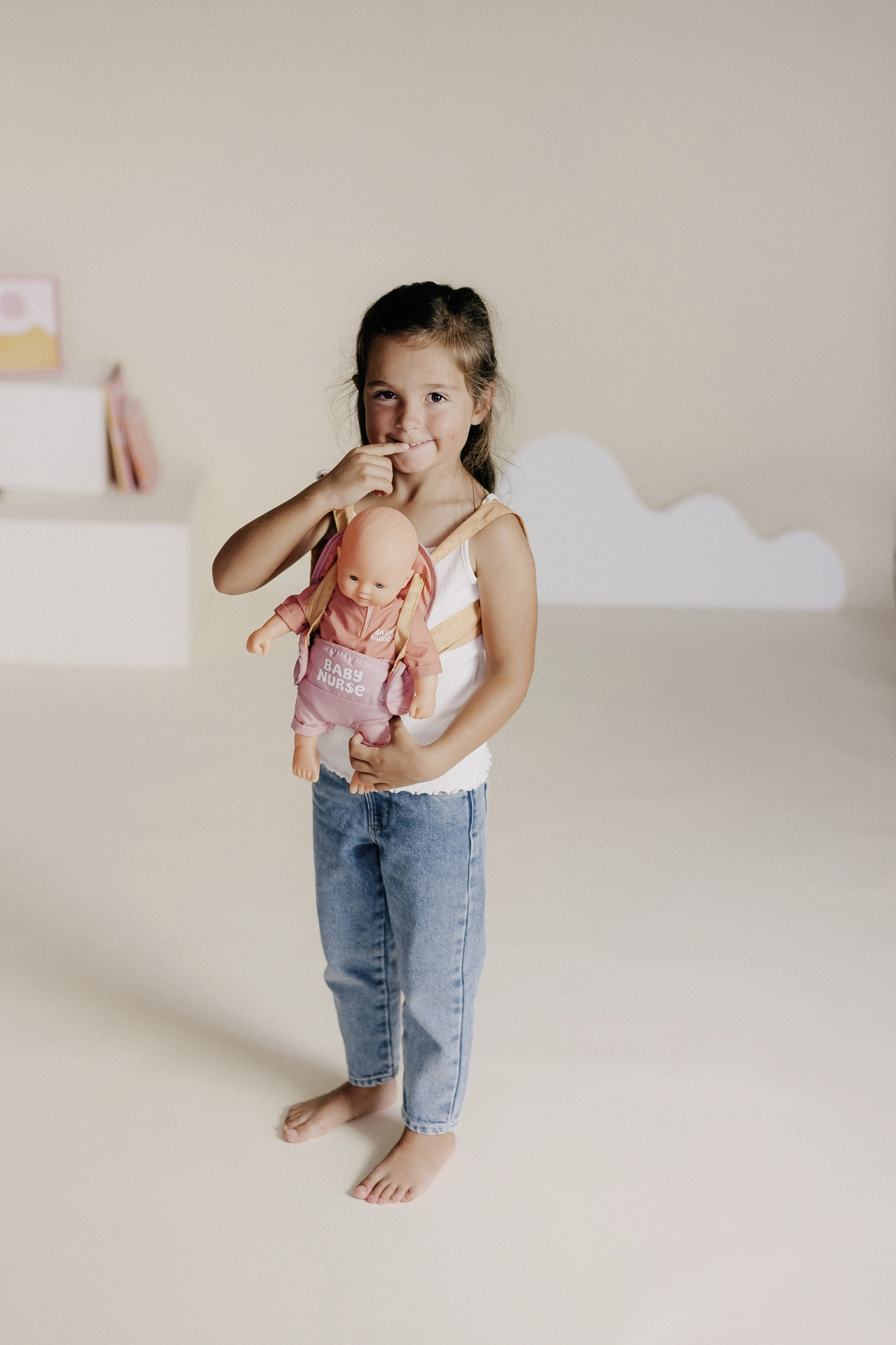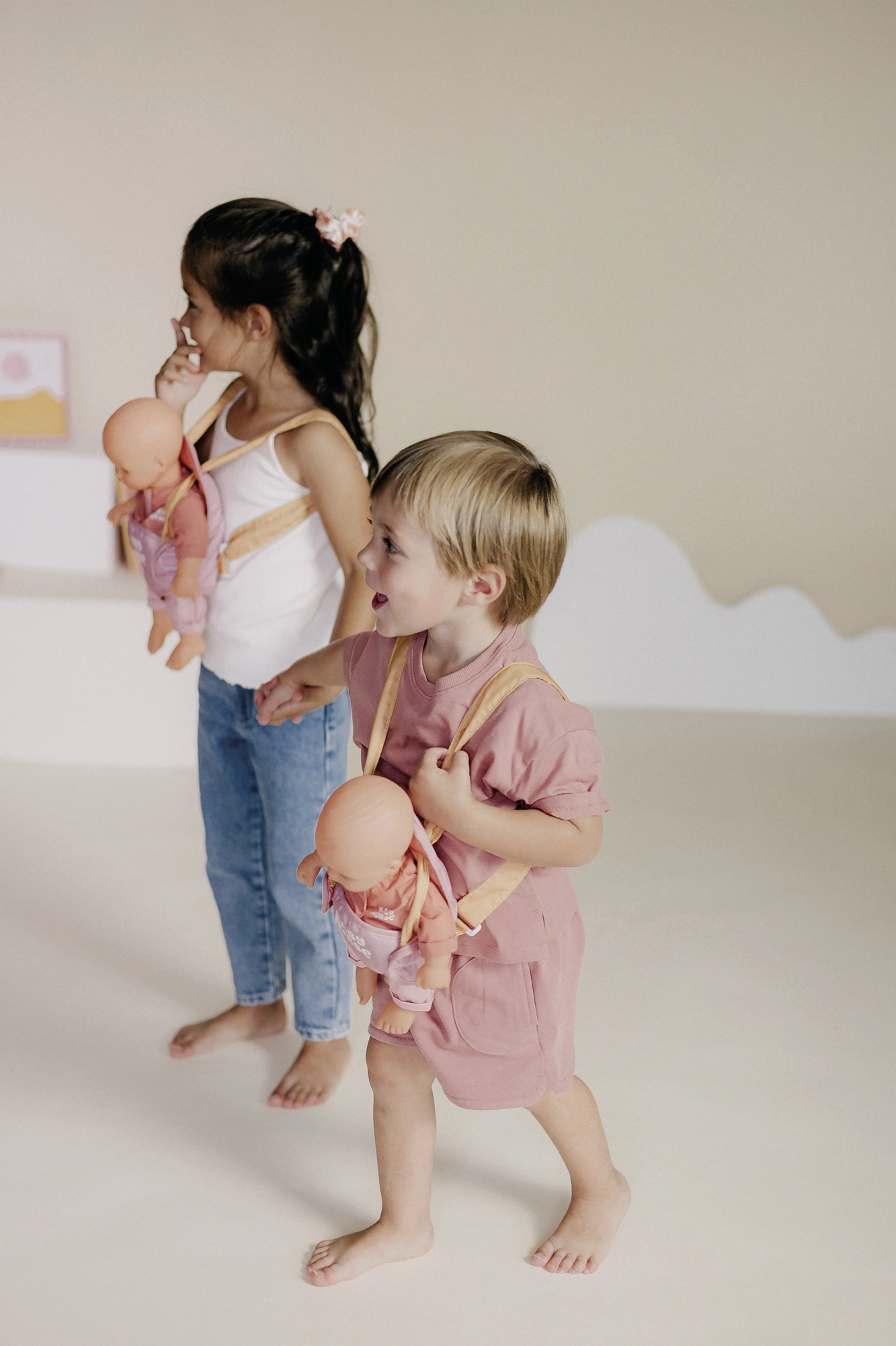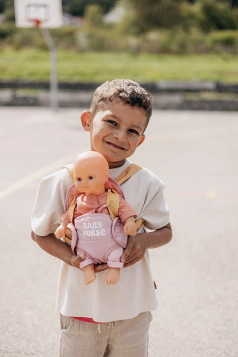 A könnyű és puha hordozó segít a gyerekeknek a felnőttek utánzásában, az empátia és a finommotorika fejlesztésében a mindennapi jelenetek során.